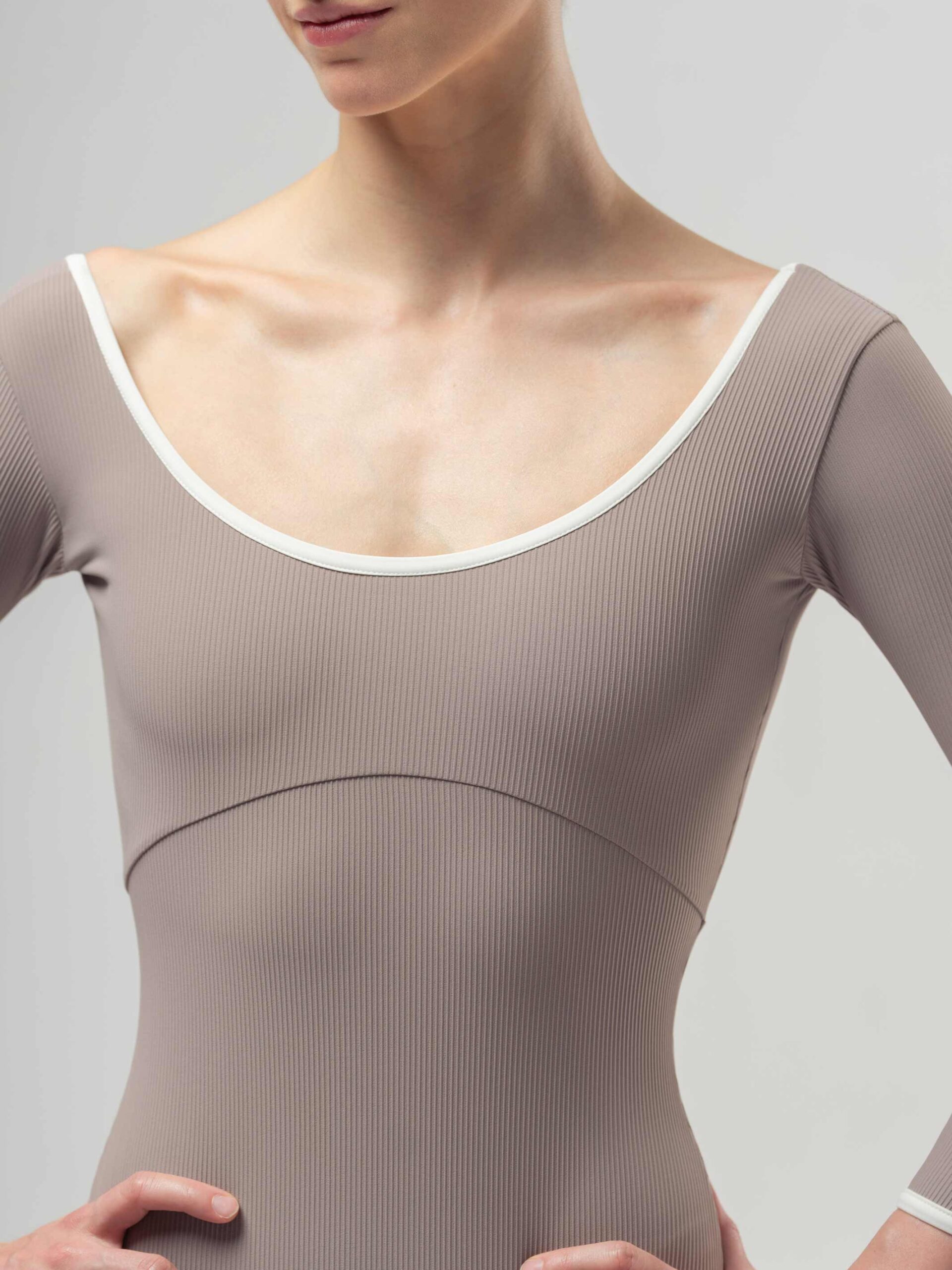 Zoals de naam al doet vermoeden, is het Alma-leotard ontworpen voor een precieze pasvorm en een professionele look die de bewegingen van de danser volgt. Met zijn elegante 3/4 mouwen en veilige ronde halslijn biedt dit model de extra bedekking en het comfort die nodig zijn voor lange studiosessies.